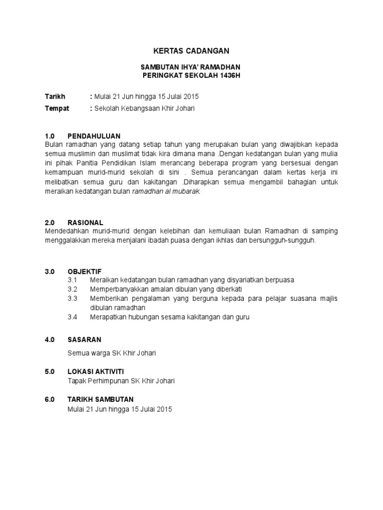 Doc Contoh Kertas Kerja Ihya Ramadhan Mar Nasir Academia Edu